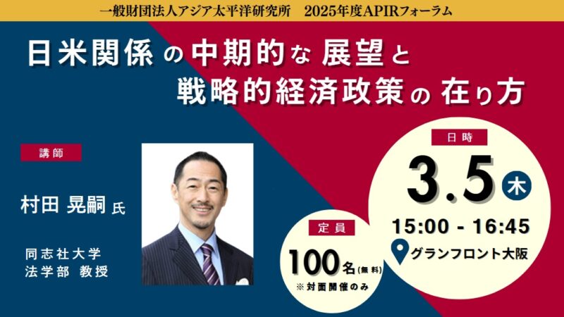 APIRフォーラム「日米関係の中期的な展望と戦略的経済政策の在り方」 募集中
