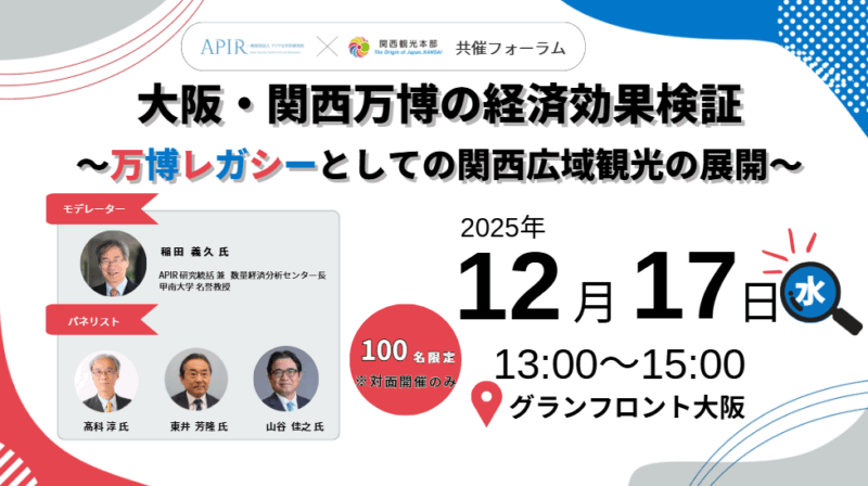 APIR・関西観光本部 共催フォーラム 大阪・関西万博の経済効果検証 募集中