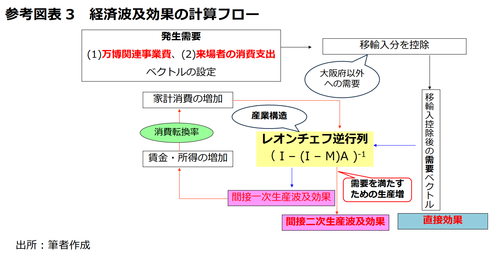 産業連関表を用いて 3 度の試算を発表した。今回は 4 度目の試算となる。この背景には、試算の前提(万博関連事業費用)がこの間大きく上振れたことがある。