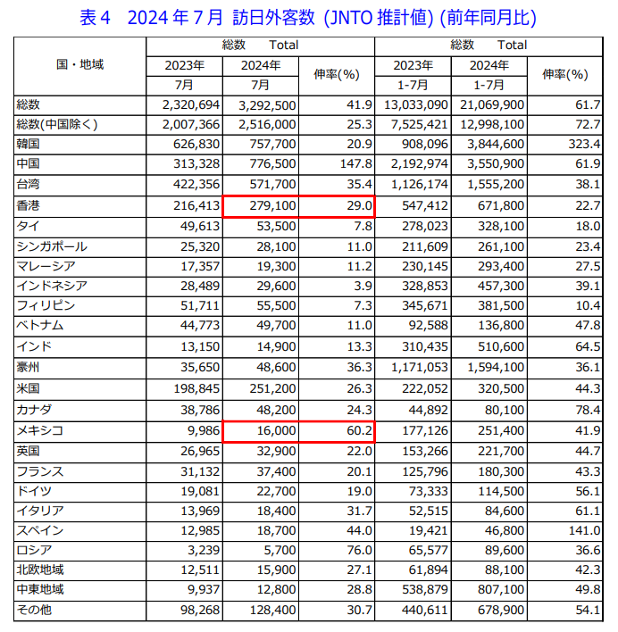 ・JNTO訪日外客統計によれば、7月の訪日外客総数(推計値)は329万2,500人。夏季休暇に伴う訪日旅行需要の高まりもあり、単月として過去最高を更新した。