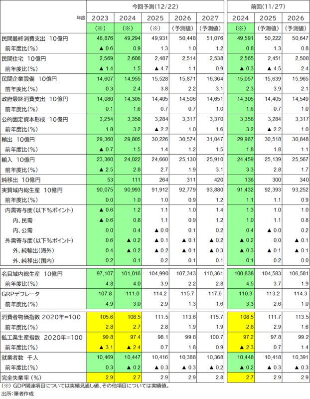 - GDP2次速報を反映し関西経済予測を改定。関西の実質GRP成長率を2025年度+1.0%、26年度+0.9%、27年度+1.2%と予測する。前回予測(11月27日公表)と比べて、GRP成長率を25年度は前回から-0.1%ポイントの下方修正、26年度は据え置きとした。今回から新たに27年度の予測を追加した。