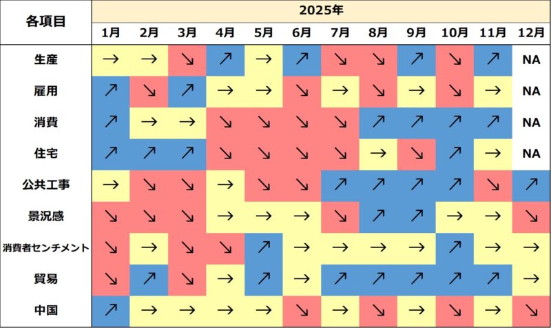 - 【景況感】12月の景気ウォッチャー現状判断DI、先行き判断DIはともに2カ月連続で低下した。物価高に加え、インバウンド需要の先行き不透明感もあり、景況感は弱含んでいる。