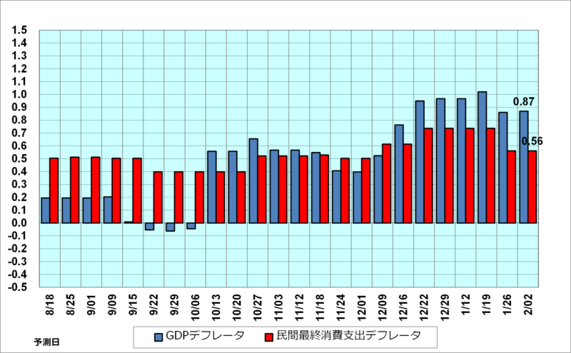 ▶今回のCQMは、10-12月期の民間最終消費支出デフレータを前期比+0.6%、国内需要デフレータを同+0.5%と予測。同期の交易条件は改善するため、ヘッドライン(GDPデフレータ)インフレ率を同+0.9%と予測する。