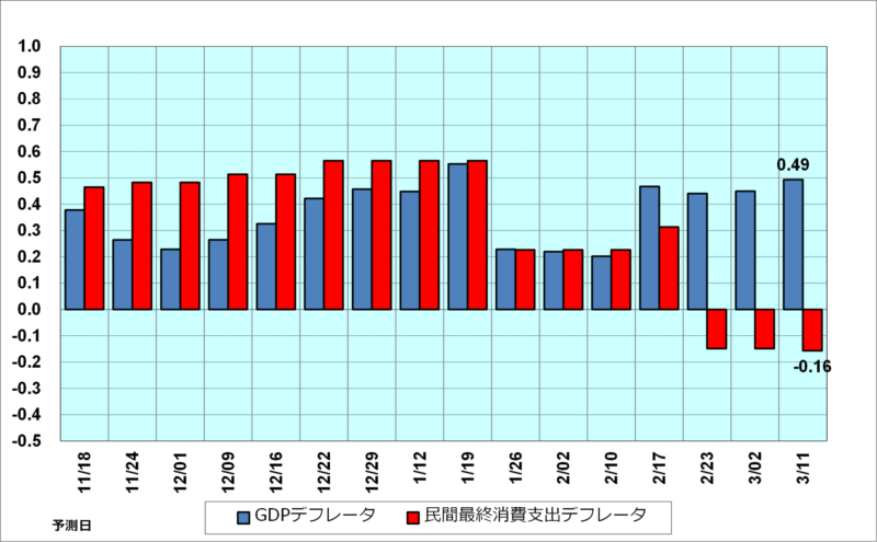 1-3月期実質GDP成長率予測の動態